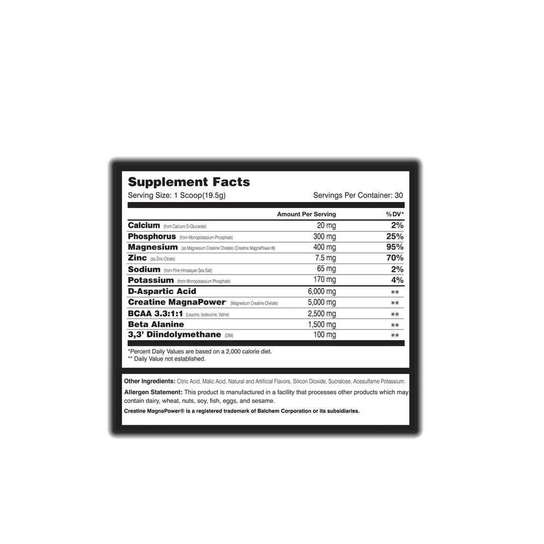 ● D-Aspartic Acid is an extremely powerful testosterone booster. There will be an increase in strength and muscle mass, especially with the 6 GRAMS serving!