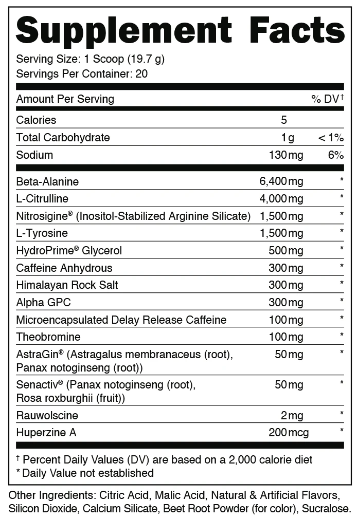 A: Extremely potent – if you’re not experienced with high-stim pre-workouts, start with half a scoop.